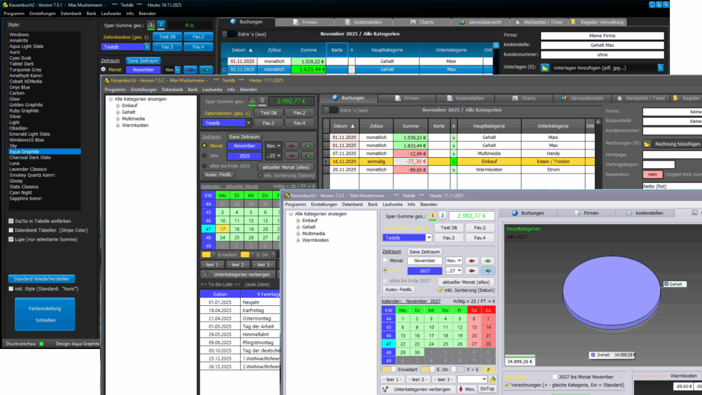 - Kassenbuch (mehrere Datenbanken möglich, 4 Schnelltasten)